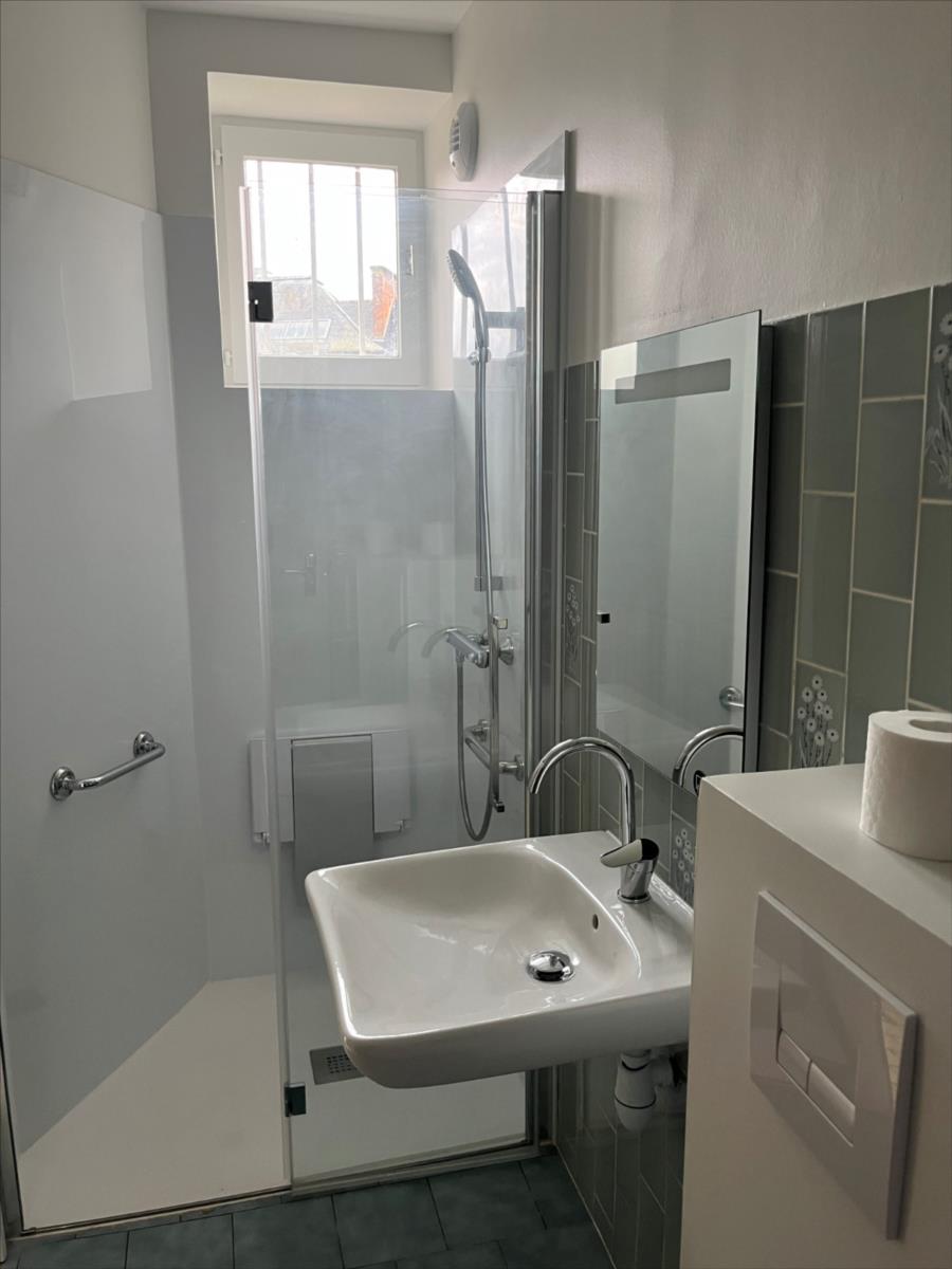 salle d’eau avec WC, à l’étage deux chambres spacieuses, un point d’eau avec lavabo et WC.